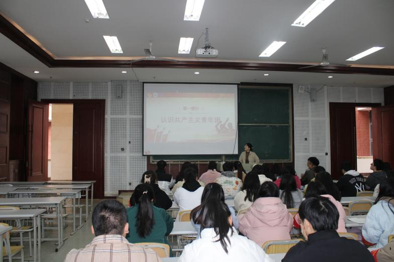 课堂上,董媛老师还介绍了共青团员必须履行的六大义务及其重要性。高尔基说过:“青春是有限的,智慧是无限的,短暂的青春应去学习无穷的智慧。”我们青年大学生担负着建设社会主义现代化的历史重任。我们要树立远大的理想,发奋学习,注重锻炼自己的品德,不断开拓我们的视野,做一名合格的青年马克思主义者。