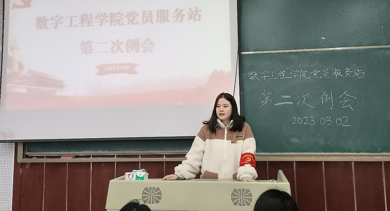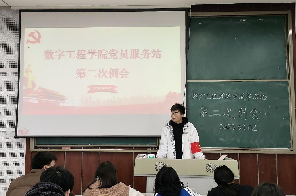 2023年3月2日12点20分,党员服务站数字工程学院分站在笃学楼3405召开23、24期入党积极分子第二次例会。会议由党员服务站数字工程学院分站副站长李学培主持,党员服务站数字工程学院分站站长龚艳琳、纪律委员会副主席陈府及分站全体成员参加了此次会议。