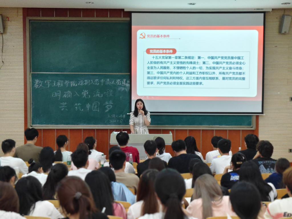 2024年9月27日12:30,beat365官方网站数字工程学院党支部第28期入党申请人党课培训在笃学楼1205教室顺利举行。本次党课由数字工程学院冉倩老师主讲,主题为“明确入党条件与流程,共筑中国梦”,旨在确保入党申请人具备基本的政治觉悟、思想觉悟和组织纪律性,从而为党的队伍注入新鲜血液,保持党的先进性和战斗力。