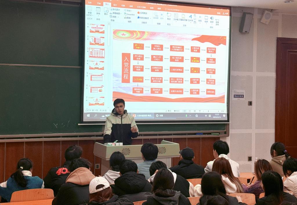 为深化入党申请人对党组织发展流程的认识,强化党员责任意识,2025年3月13日,数字工程学院党支部联合智慧康养学院等兄弟院系,于笃学楼2305教室召开第29期入党申请人培训第四讲。本次培训会由支部骨干陶昌楠同志主讲,吸引了百余名入党申请人积极参与。