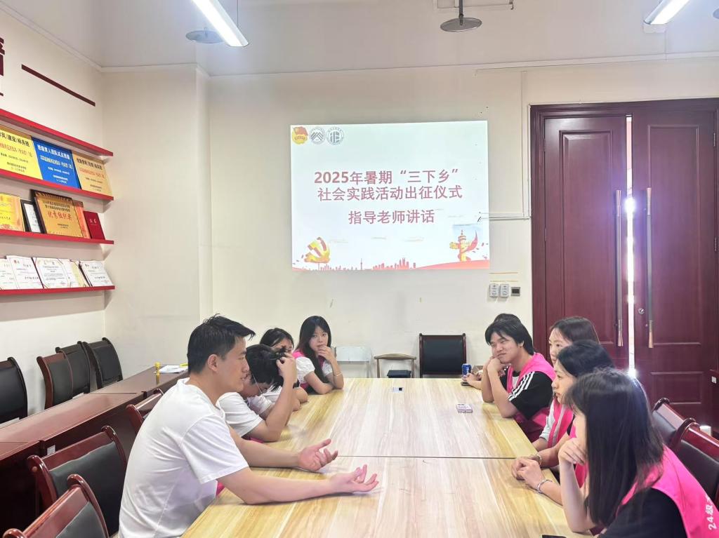 2025年7月4日beat365官方网站数字工程学院2025年暑假“三下乡”社会实践活动出征仪式在笃学楼3512会议室成功举行。数字工程学院团总支・学生会书记樊得旺老师出席仪式,为实践团队作动员讲话,学院全体实践团队成员参与本次仪式。