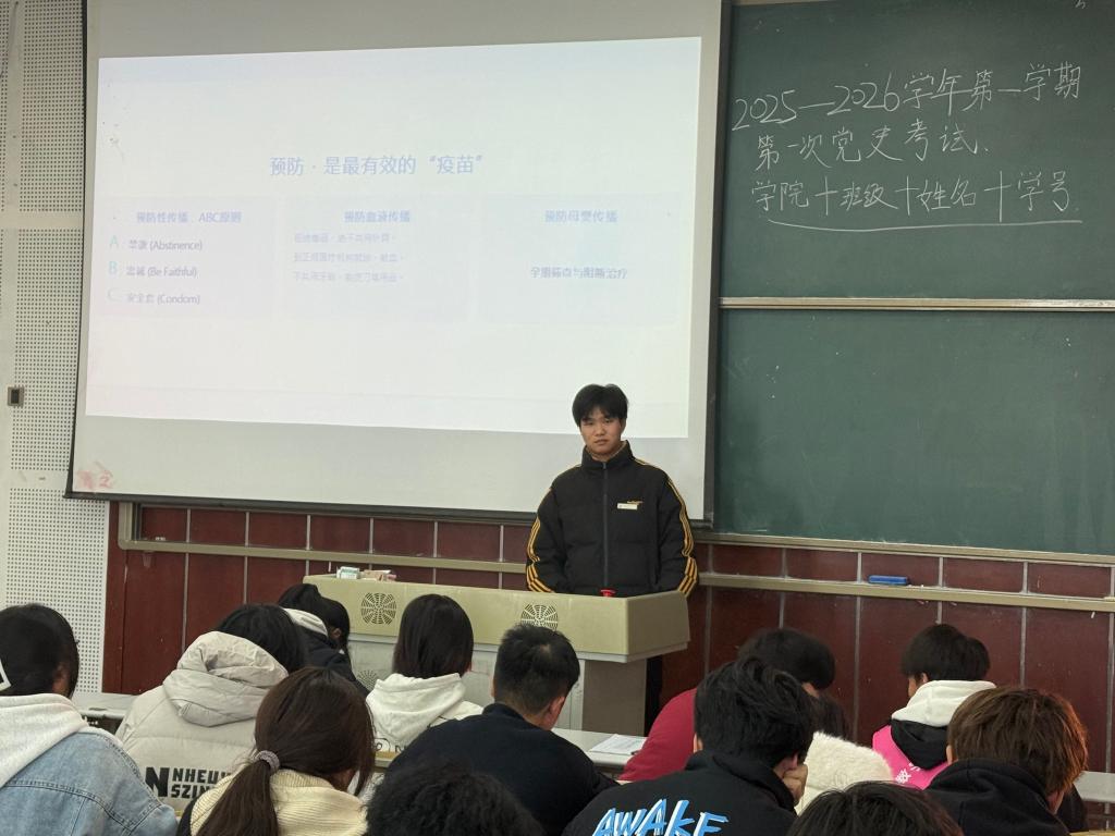 此次例会特别增设艾滋病防治专题宣讲环节,传递"心怀感恩,为'艾'发声"的青春责任。宣讲从生命敬畏角度切入,系统科普艾滋病的传播途径与科学预防知识,明确性接触、血液、母婴为主要传播渠道,日常接触不会感染的核心常识,并倡导通过"ABC原则"做好自我防护。同时呼吁学生干部带头消除歧视,以红丝带精神传递关爱,主动参与防艾宣传,推广检测咨询资源,做自身健康的第一责任人,为建设零艾滋青春校园贡献力量。