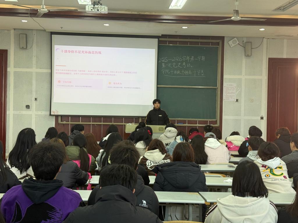会议始,主讲人何浩均强调学生干部身份的核心价值并非"万能钥匙"而是"能力加分项"。通过案例分析指出,干部需摒弃"空有头衔"的形式主义,在服务同学中锻炼组织协调、沟通应变等可迁移能力,实现"服务同学-能力提升-个人成长"的正向循环。