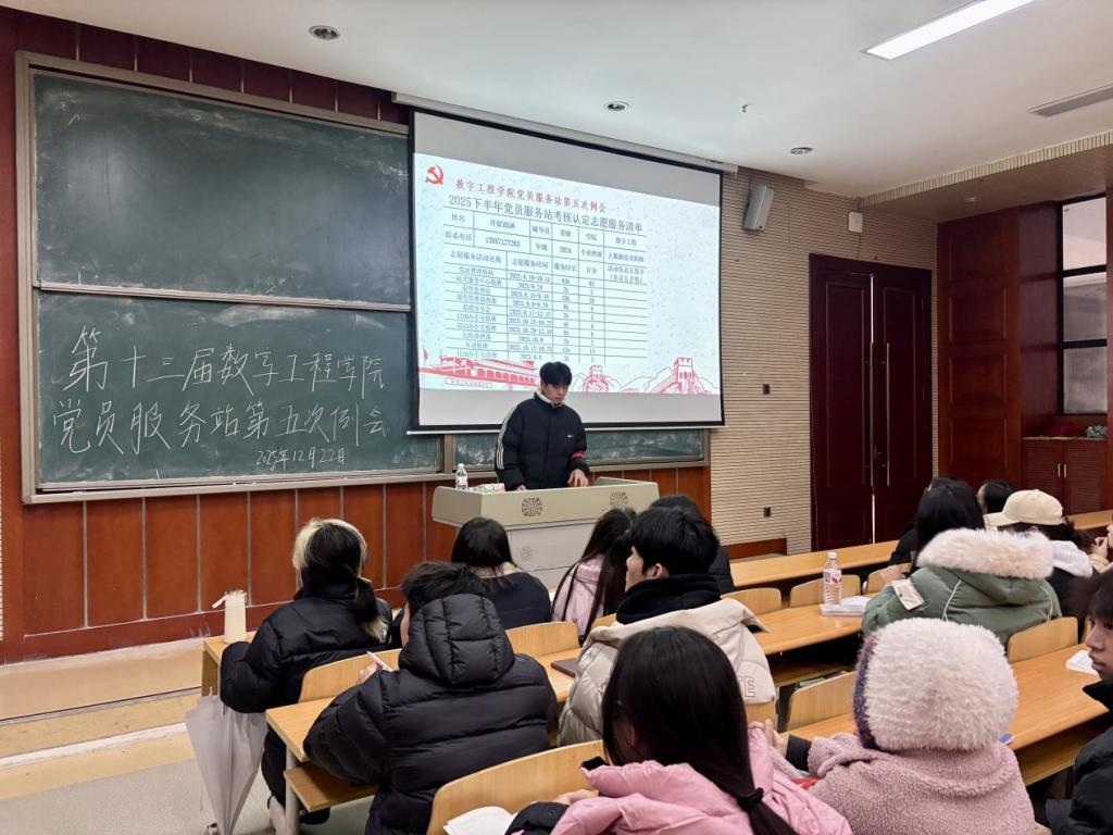 为进一步规范党员服务站日常运营,明确先锋队员职责使命,强化志愿服务与组织纪律建设,第十三届数字工程学院党员服务站分站第五次例会顺利召开。