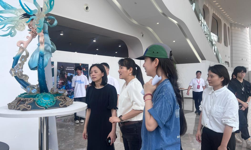 2024年5月19日,我院虚拟现实教研室在图书馆一楼开展元宇宙遨游职业教育周活动,教育部职业教育发展中心副主任黄辉,重庆市教委职成教处处长吴岚,重庆市高等教育学会驻会副会长黄腾蛟一行在数字工程学院副院长孙二华,院长助理刘亚妮,办公室主任许倩及虚拟现实教研室主任唐偲祺的陪同下,参观了虚拟现实专业和校企合作单位重庆龙之瑞科技有限公司产教融合的项目,包括国潮系列长篇玄幻小说《斗破苍穹》里的经典人物美杜莎的模型制作和一些基础手办的设计和制作。各位领导在参观后对学院虚拟现实技术应用专业的岗课赛证综合育人模式表示肯定,并对下一步专业建设提出了指导性意见和建议。