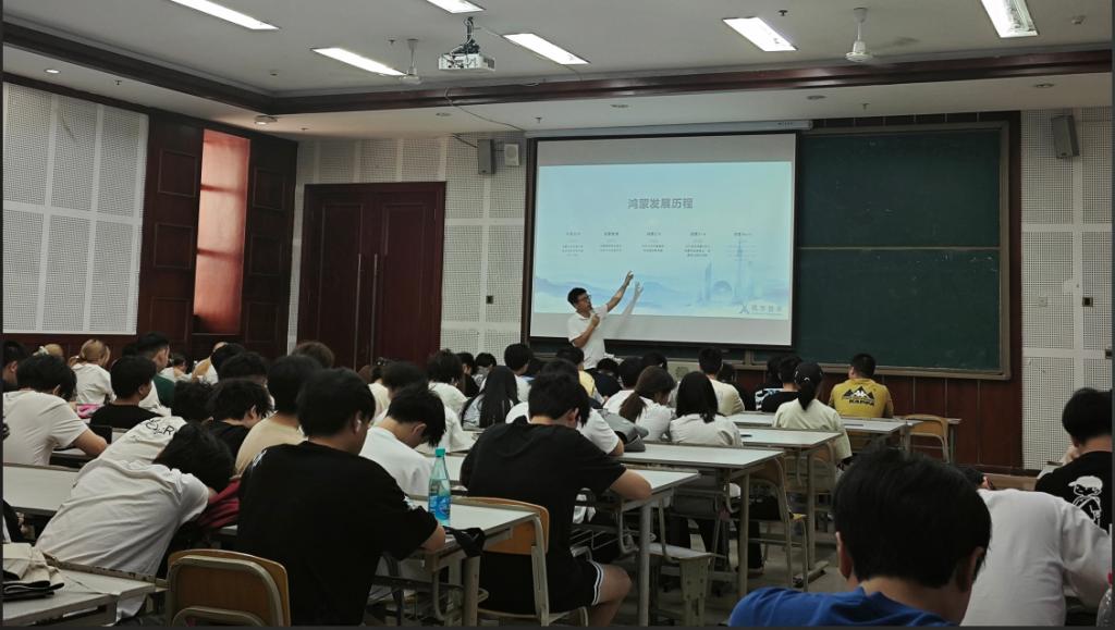 卢有烨专家深入讲解了鸿蒙系统的开发流程,从项目搭建、UI 设计到功能开发、测试上线,每一步都进行了细致剖析。在关键技术方面,对分布式数据管理、原子化服务等技术进行深度解读,让同学们了解到鸿蒙开发的技术核心。最为引人入胜的是对鸿蒙系统未来发展趋势的展望,卢专家提到,随着 5G、AI、物联网等技术的持续发展,鸿蒙将进一步拓展生态版图,在工业互联网、智慧医疗、智能教育等垂直行业深度渗透,实现 “万物智联” 的愿景。鸿蒙系统的开源模式也将吸引更多开发者加入,共同推动生态繁荣,创造无限可能。
