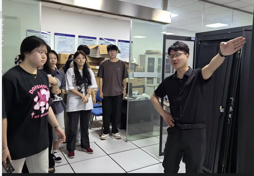 活动当日,白欢老师凭借深厚的专业知识储备与丰富的行业经验,化身 “引路人”,带领学生们有序参观信息中心的各个区域。在参观过程中,白欢老师对信息中心的网络架构、云计算设备、数据存储系统等专业设施进行了深入浅出的讲解,从设备的运行原理到实际应用场景,从前沿技术的发展趋势到行业未来的变革方向,每一个知识点都讲解得细致入微。面对学生们提出的各类问题,白欢老师也都耐心解答,展现出讯方技术企业专业过硬、精益求精的态度。