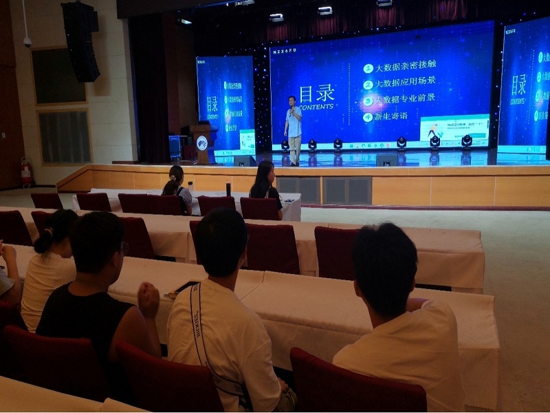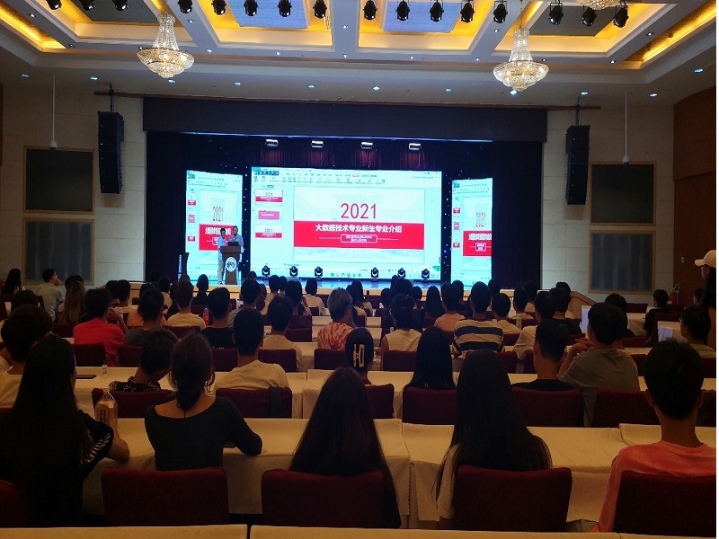大数据应用技术教研室主任蔡孝成老师进行专业介绍。蔡老师代表大数据应用技术教研室全体教师对2021级新生的到来表示热烈欢迎,随后从大数据亲密接触、大数据应用场景、大数据专业前景和新生寄语四个方面为全体新生做专业介绍。最后,蔡老师以“天生我材必有用,放下负担,奔向新起点”这句寄语结束专业介绍内容,给新生指明了前进的方向,希望全体新生做好自己的规划,努力学好专业知识,收获幸福美满的人生。