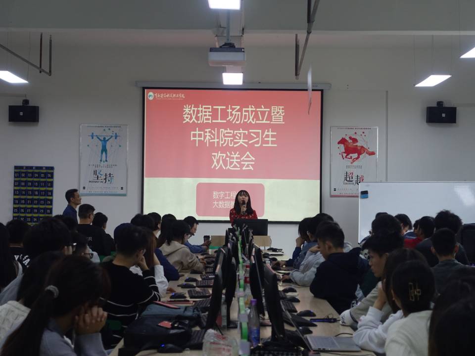 为了让同学们深入体验完成大数据项目,并从中不断学习成长,在技术方面得到更好的提升,同时将理论与实践更加有机结合,数字工程学院于2021年10月13日下午两点,在科技楼X406举行了数据工场成立暨中科院实习生欢送会。参会人员包括数字工程学院副长孙二华、校企教师、2021和2020级专业50余名同学,会议由大数据应用技术教研室主任蔡孝成主持。