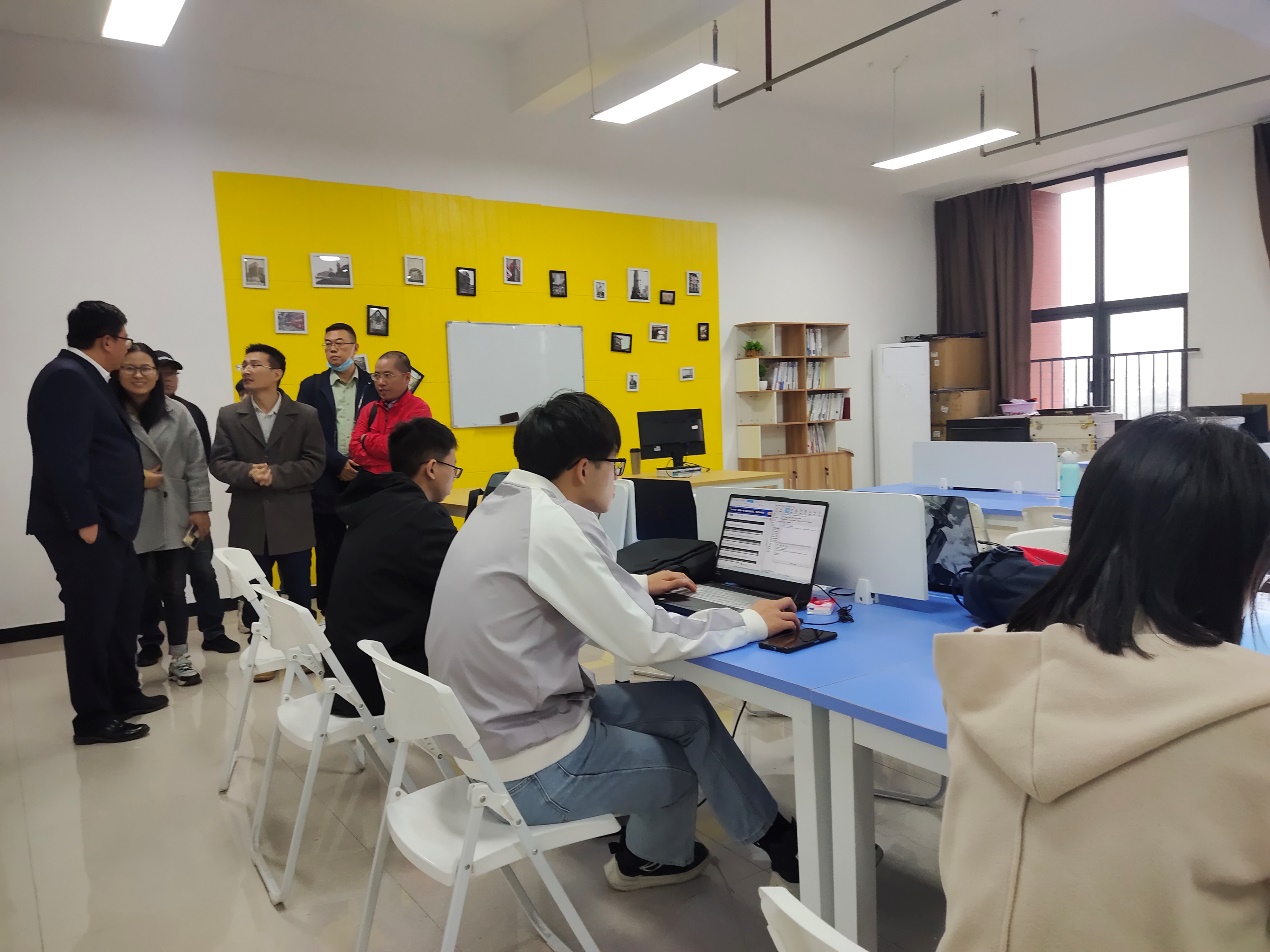 考察期间,数字工程学院孙二华副院长首先带领考察交流人员先后考察参观beat365的VR虚拟现实实训中心、大数据学院实训中心、大数据的“数据工厂”校内实训基地等,同时从“教育学生、孵化学生,服务学生”向大家介绍数字工程学院专业教育理念及后期发展规划。中国航天科工集团第三研究院第三〇四研究所重庆办事处主任孟凡杰、李晶晶等考察人员对beat365实训基地、教育理念及发展规划给予高度评价。