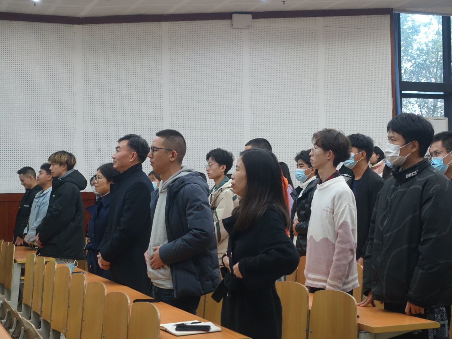 讲座伊始,樊老师给大家带来一曲《不忘初心》,由程茜老师钢琴伴奏以及数字工程学院的同学们和声。一曲结束,樊老师分别从歌唱的站姿、歌唱的呼吸及歌唱的发声方式三个部分来进行本次的讲座,最后对歌曲《我和我的祖国》进行练习将本次讲座的气氛推向高潮,同学们也积极的发出声音,唱出对祖国的热爱。