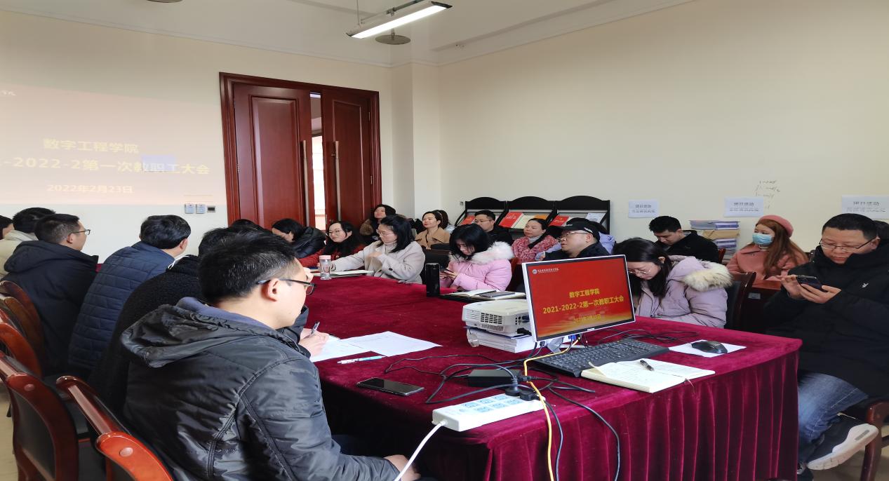 2022年2月23日14:00,数字工程学院全体教职工在笃学楼3512会议室召开本学期第一次教职工大会,大会由唐国坪院长主持,本院全体教师参会,本次会议共有四项议程。
