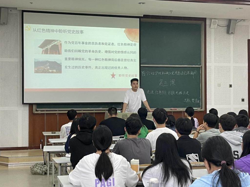 本次培训的主题是“走进红色岁月,回忆光辉历程”。伊始,数字工程学院党支部宣传委员樊得旺老师以中国共产党百年奋斗进程中形成的红色精神为主题,带领同学们回顾革命历史,增强对党的情感和重要的精神寄托。