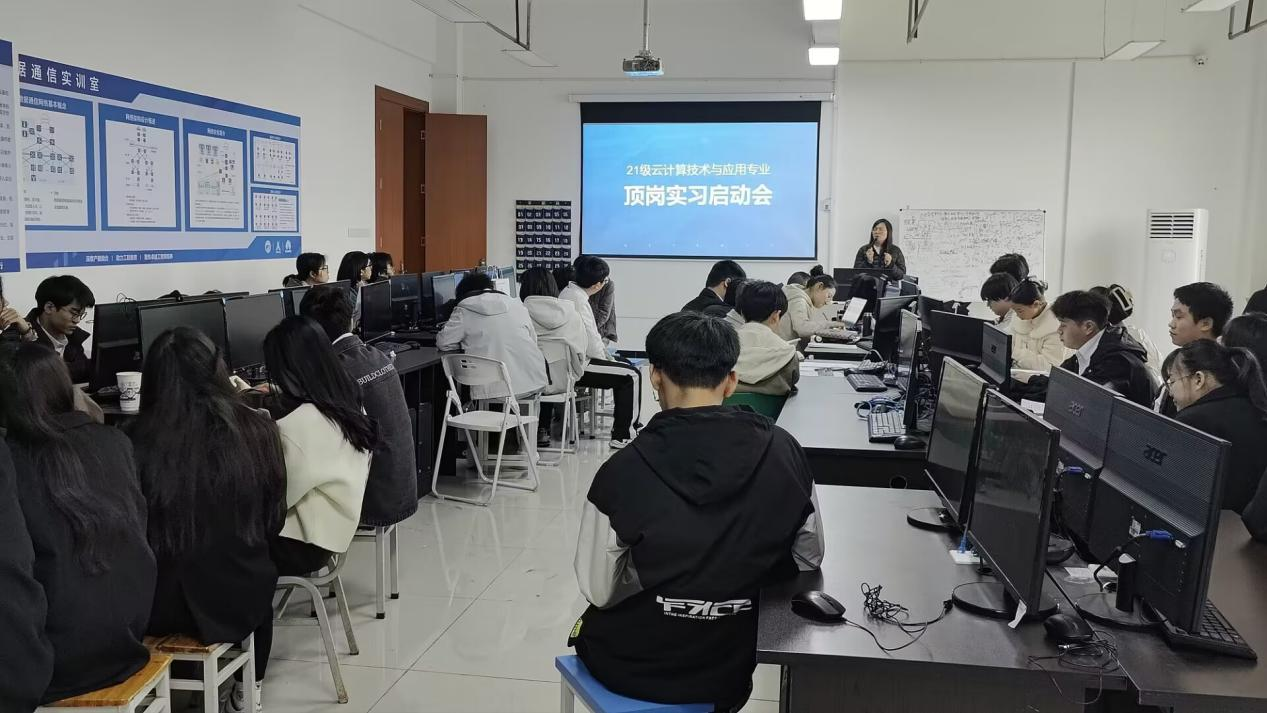 为进一步做好毕业生岗位实习工作,加强学生对岗位实习的认识和了解,引导学生通过岗位实习提升个人综合素质与就业竞争力,2023年11月15日,计算机网络技术与云计算技术与应用专业在学校科技楼X507召开岗位实习动员大会,2021级全体毕业生参加。