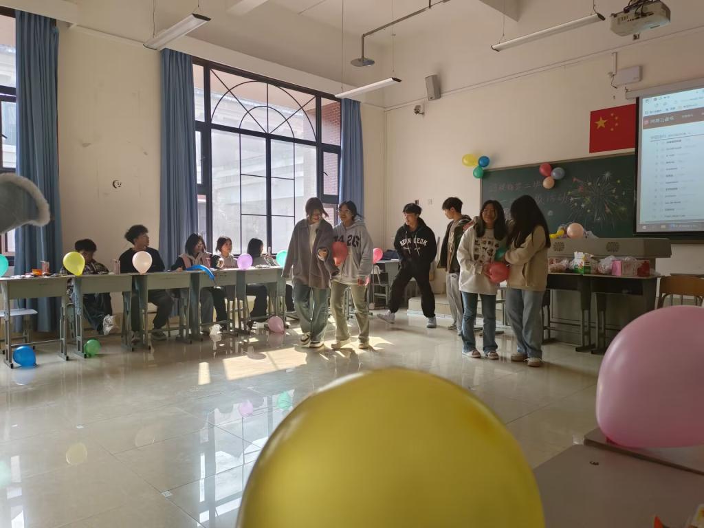 为确保本次活动顺利进行,班长提前一周告知同学们准备本次活动,以确保每个同学都能空出时间参加。同时由文艺委员王树青和宣传委员苏家航准备活动相关流程与活动道具,交由班长审核,告知生活委员支出班费。活动于下午1点开始,首先进行的是双人运气球比赛。同学们以小组为单位,在规定的一分钟内,用除手外的任意部位运送气球。这个比赛既考验了同学们的默契,也锻炼了他们的团队协作能力。是“逛三园”游戏,同学们通过这个游戏增进了彼此的了解,也让整个活动气氛更加活跃。紧接着的“抓鸭子”游戏更是让同学们笑声连连,乐趣无穷。接下来“一起来重庆”的游戏环节,同学们分成两个组,依次起身做出指定动作并说出“大家一起来重庆”“几个人来的”。这个游戏不仅考验了同学们的反应速度,也让他们在游戏中更加深入地了解彼此。在后续的声母游戏,通过拍手打节奏给出mm造词妈妈,同学们开始了他们的名字接力。这个游戏让同学们在重复的陈述中,关注每一个人的名字以及他们的样子,从而快速互相认识。在“有奖竞答”环节中,同学们争先抢答的模样充分展现了新时代大学生勇往直前,有勇有智的新风貌。在“你说口令,我反转”游戏中,主持人发出“稍息”的口令,同学们要做相反的动作,即“立正”姿势;“立正”对应“稍息“向左”对应“向右",“向前"对应“向后"。这个游戏不仅考验了同学们的反应能力,也让整个活动气氛达到了高潮。