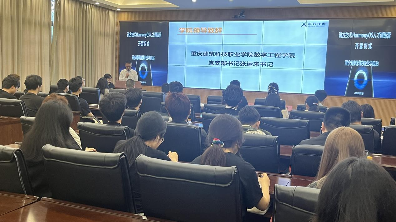 在开幕式上,活动主持人余尧老师热情洋溢地宣布了鸿蒙训练营的正式开启。随后,学院领导党支部书记张运来书记对本次训练营活动发表了热情洋溢的致辞,对学员们的到来表示热烈欢迎,并强调了鸿蒙训练营在培养创新人才、推动行业发展方面的重要作用。
