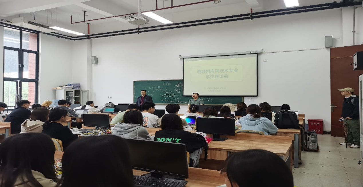 为了深入了解学生的学习状况、教学反馈以及校园生活的各个方面,2024年4月22日物联网应用技术专业教研室在信息馆Z204开展了2023-2024-2中期学生座谈会。此次座谈会由物联网技术教研室主任段怡老师主持并开讲,22级、23级物联网应用技术专业老师及各班级的学生代表参会。会议目的是希望学生代表能够畅所欲言,对教学及管理工作和特色性建设提出宝贵的意见和建议。期望以这次座谈会为契机,切实推进教学工作的深入开展,提高课程教学质量,进一步优化学生的学习环境。