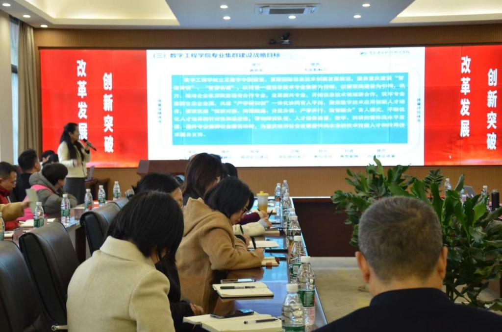 孙二华院长在发言中剖析建设一流职业大学的信心源泉,解读其定义标准,强调提升生源、就业、社会服务等方面的意义,并提出创新融合、贯通多领域及优化教学等建设方法。同时,孙院长对标一流专业集群建设,指出差距并阐述校企联动等改进举措,明确学院立足数字建设,服务重庆发展的专业建设目标。