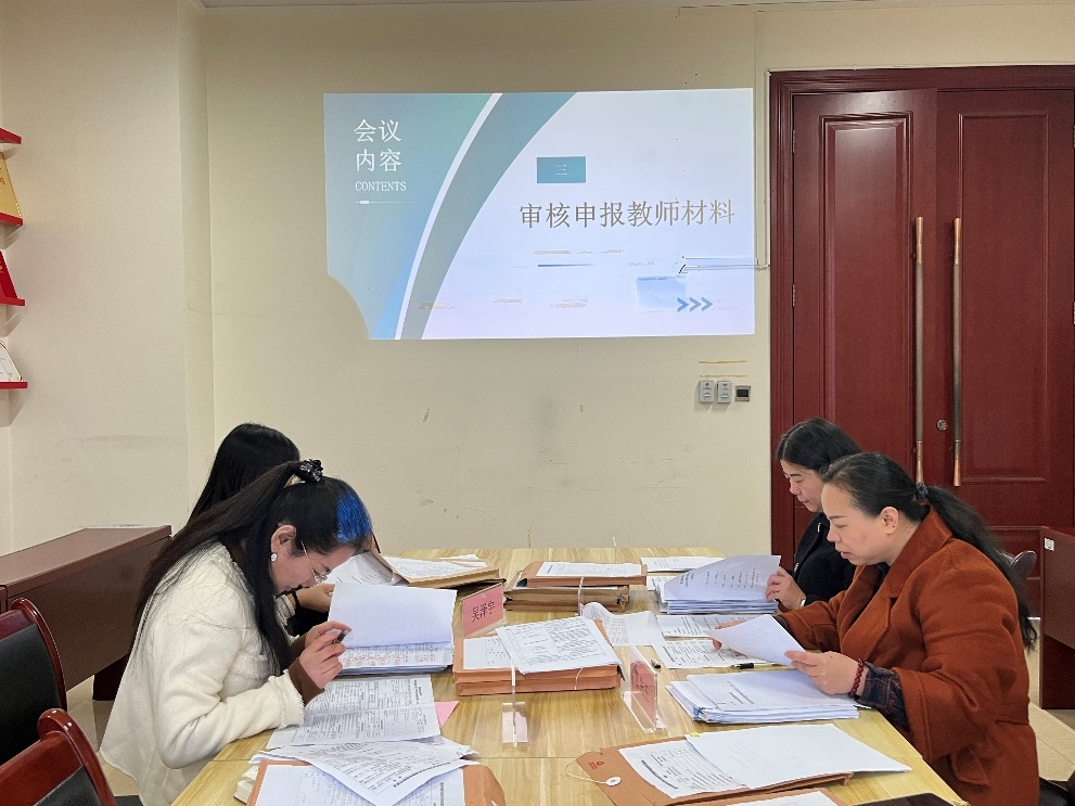 推荐小组成员对照评定文件从申报教师的师德师风、教学业绩、科研成果、学术论文等方面对11位教师的申报材料进行了评议,并给出了推荐意见。