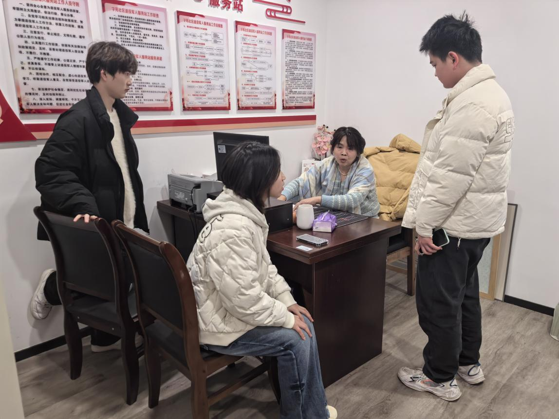 调研伊始,社区负责人对师生团队的到来表示热烈欢迎,并详细介绍了社区老年群体的基本情况、现有养老服务举措及政务平台运营现状。据介绍,陈家桥学院社区老年人口占比偏高,其中独居、空巢老人数量较多,养老服务需求呈现多元化、个性化特征。目前社区正在使用重庆市基层基础政务服务平台,涵盖养老政策宣传、高龄津贴申请、居家服务预约等功能,但在实际运营中仍面临诸多挑战。