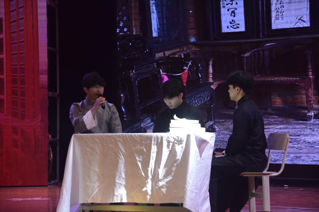 “避死求生是人的本能,但在敌人枪口面前,看着纷纷倒下的难友,他却主动迎向枪口,拥抱死亡,而将生的希望留给别人......”。在数工学子们精彩绝伦和绘声绘色的表演下,取得了学院领导和老师们的支持与认可。台上演员精湛的表演让观众们感受到革命先烈的坚定信念与无畏勇气,仿佛穿越时空,看到了他们为了理想和正义而奋勇拼搏的身影。