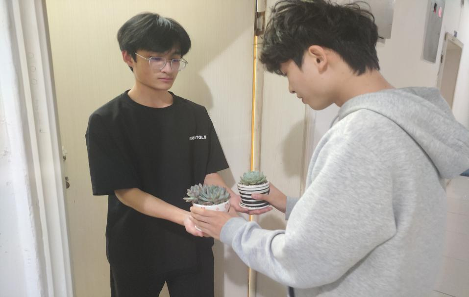 在盆栽领取现场,班委们不仅提供了多种品类的盆栽供大家选择,还给同学们科普了多肉植物的日常养护细节。参加本次活动的同学们纷纷表示,活动方式很新颖,为寝室增添了绿色的生机。