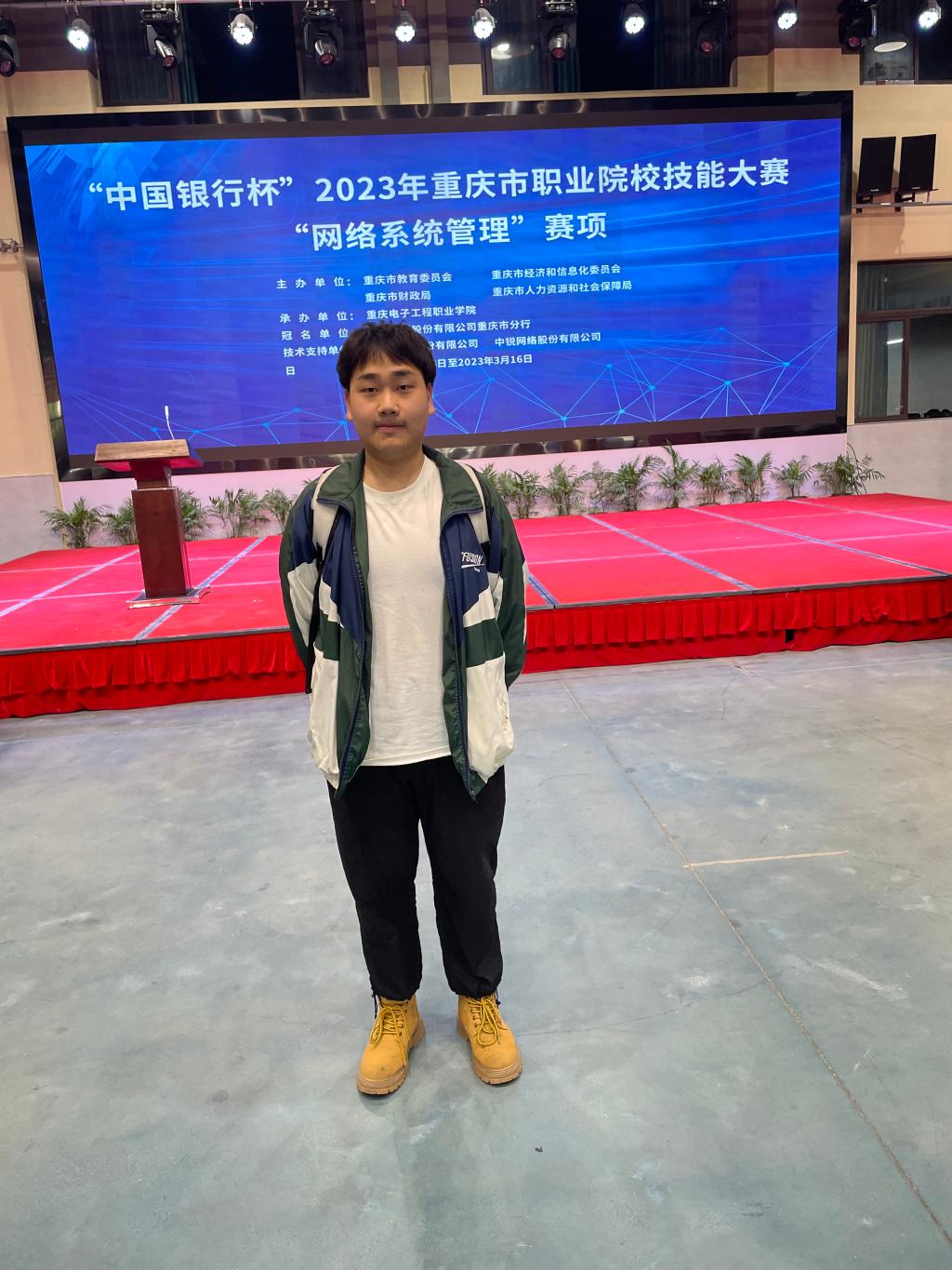 2023年3月15日、16日,我院21级计算机网络技术专业蔡馥名同学,在我院教师牟建华老师指导下,参加了“中国银行杯”2023年重庆市职业院校技能大赛高职组“网络系统管理”赛项,并取得喜人佳绩!