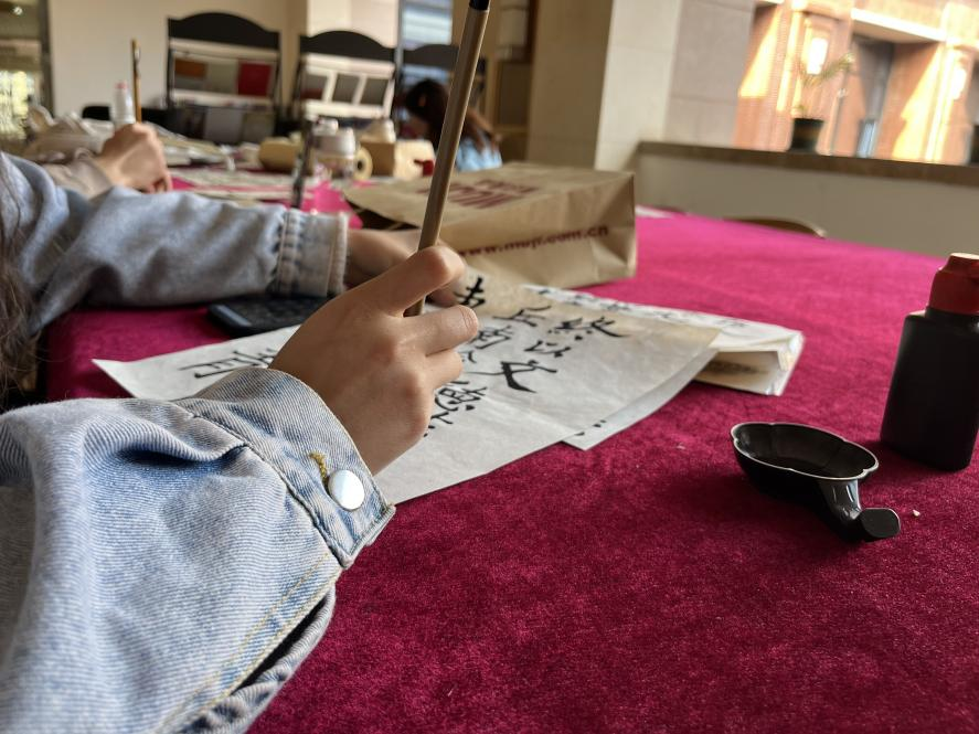 活动中,社长张一鸣对不同水平的社团成员,耐心教导,细心传授对社员们在运笔、临摹等问题上进行指点有问必答社员们更是专心致志,陶醉其中大家细细琢磨字的框架结构,一笔一画,不急不缓地练起来柔软的毛笔在纸上挥动,一幅幅各具特色的作品便呈现眼前。