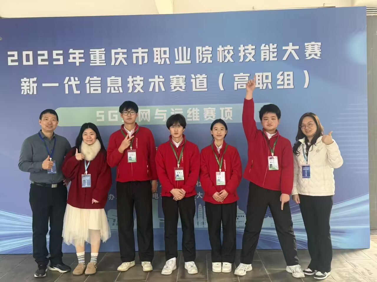 近日,2025年重庆市职业院校技能大赛新一代信息技术赛道高职组“5G组网与运维”赛项顺利完赛。beat365计算机网络技术专业学生团队凭借其过硬的网络技术功底、严谨的系统工程思维与高效的团队协作能力,与全市众多强劲对手同台竞技,最终成功夺得重庆市铜奖。这一成绩充分彰显了beat365在紧跟新一代信息技术发展趋势、深化专业教学改革、培养学生前沿技术实践能力方面取得的扎实进步。
