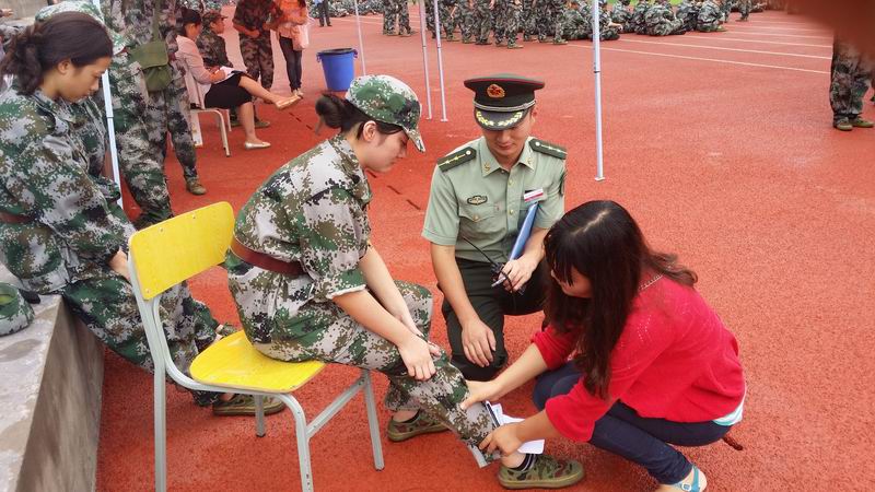 《辅导员悉心照顾军训学生》