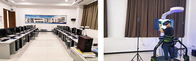本专业拥有建筑面积2000余平方米,是西南地区高校最大,集虚拟现实技术教学、科研、培训、研发、体验与科普为一体的虚拟现实技术实训中心,设备总值达2430万元,包含VR图形工作站、洞穴等7个实训室。拥有校外优秀企业实训基地10余处。