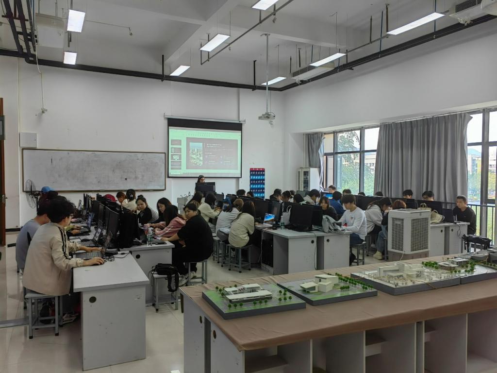 来自智慧城市管理技术、建筑设计和室内设计的40多名同学参与了此次活动。企业导师朱星月与专业教师们一起,一对一指导学生运用光辉城市MARS软件进行实践操作,亲身体验VR虚拟现实技术的魅力。