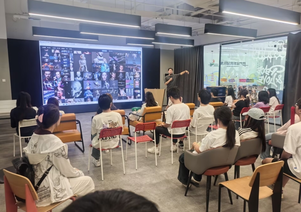 参观结束后,乐尤科技人力资源总监为学生们带来专题宣讲。结合行业趋势指出,随着元宇宙、AI绘画等技术的爆发,数字媒体领域岗位需求激增,但企业更看重“技术+艺术”的复合能力。“比如游戏美术岗位,不仅需要扎实的绘画功底,还需熟悉Blender、UE5等工具;而技术岗位则要求代码能力与审美意识兼备。”