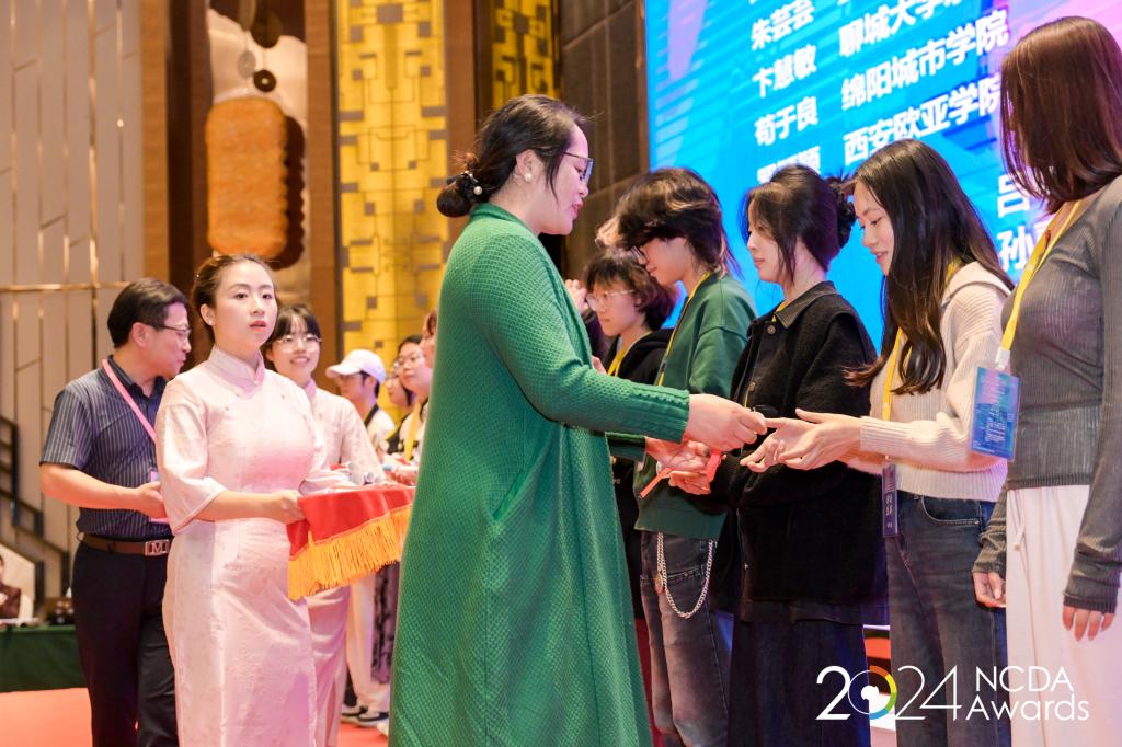此次颁奖典礼盛况超前,在热烈的掌声中,第12届未来设计师NCDA全国总决赛三等奖获得者陈静同学、优秀指导教师王彦苏老师依次上台领奖,并与颁奖领导嘉宾合影留念。