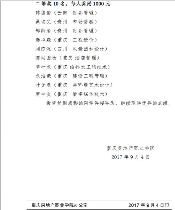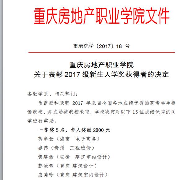 表彰2017年新生入学奖