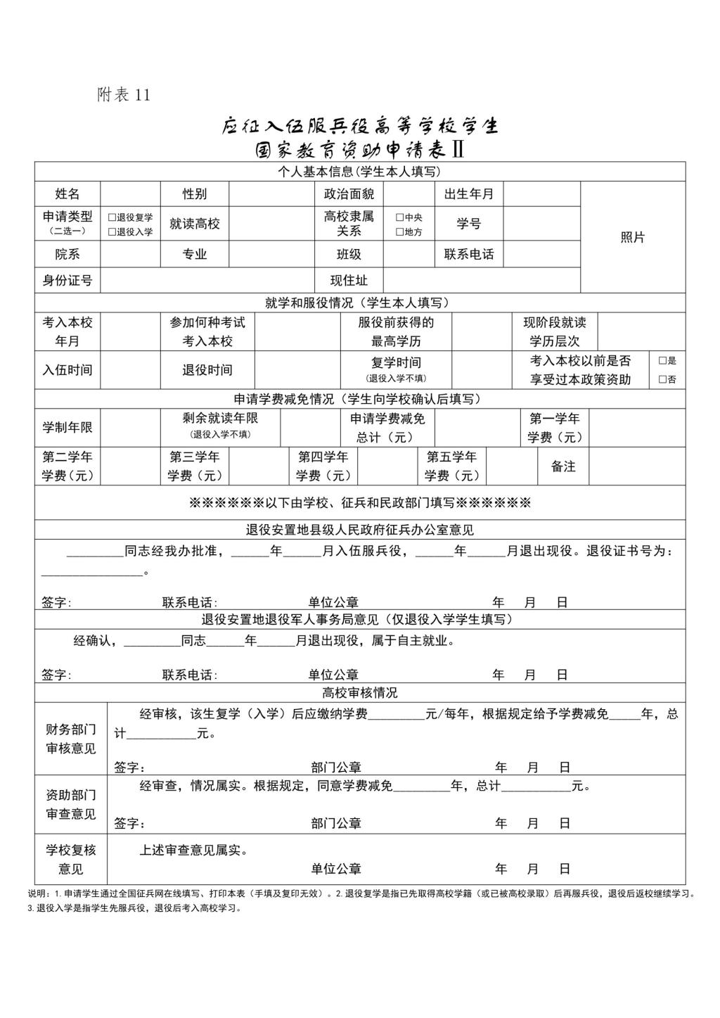 服兵役高等学校学生资助申请表国家教育资助申请表Ⅱ