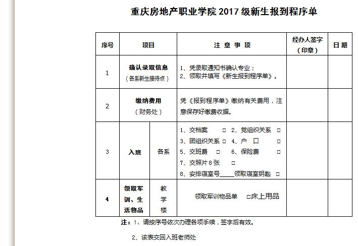 新生报到程序单