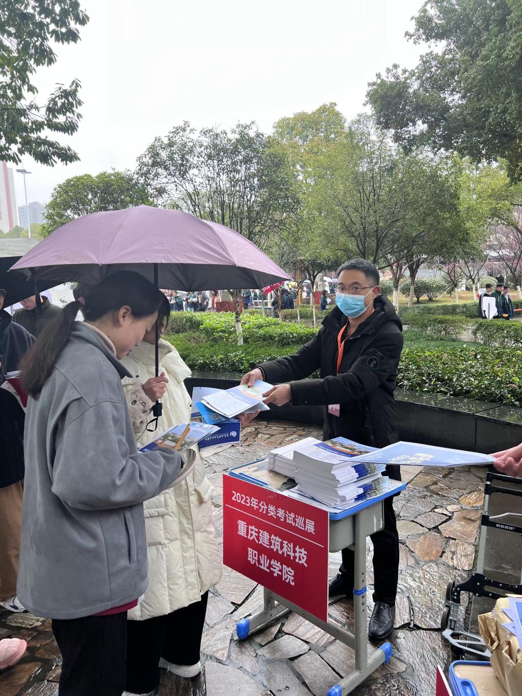 2月13日beat365招生就业处任峰、郎中楼、冯康浩3位老师参加了重庆市高等教育学会主办、重庆昭信传媒承办的2023年分类考试巡展招生宣传活动。