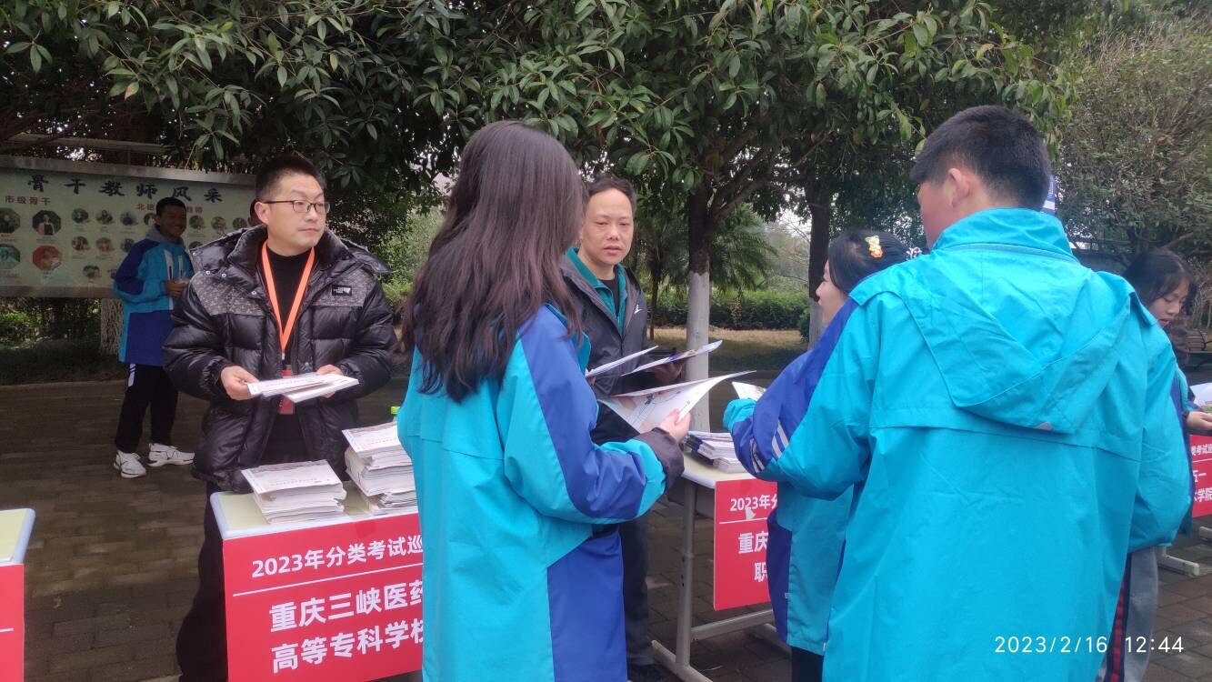 2月16日beat365招生就业处任峰、郎中楼、冯康浩3位老师和beat365智能制造学院罗舒老师一道,会同周锐杰、陆张学、谢丽莉等3位学生助理,参加了重庆市高等教育学会主办、重庆昭信传媒承办的2023年分类考试巡展活动,有力地推进beat365招生宣传。