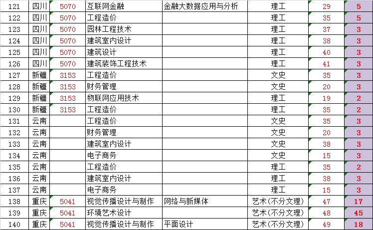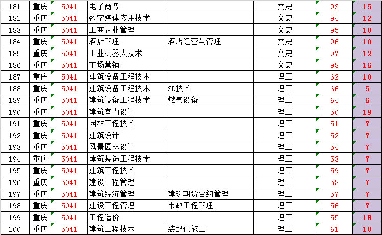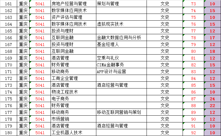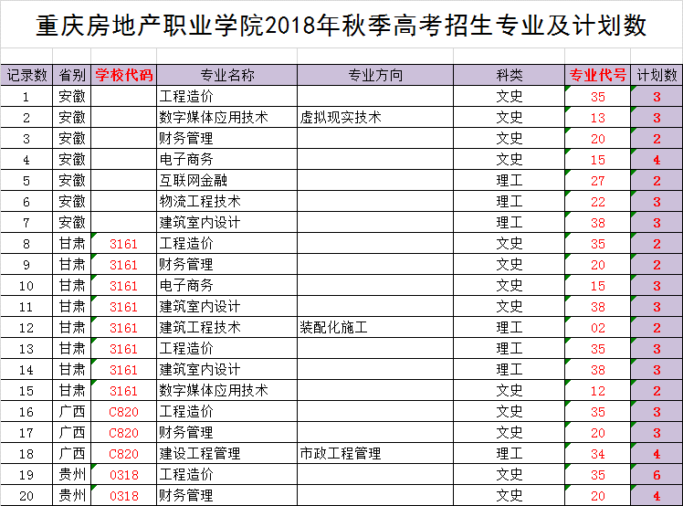 beat3652018年重庆招生专业代号及计划数